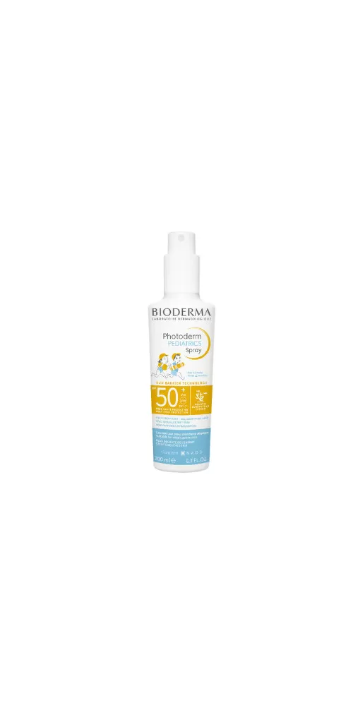 Velmi vysoká širokospektrální sluneční ochrana v opalovacím spreji pro děti, která stimuluje obranné mechanismy citlivé dětské pokožky. Doporučeno pediatry. Velmi vysoká sluneční ochrana, vysoká odolnost, nezanechává viditelné stopy, 8h hydratace. Photoderm PEDIATRICS sprej SPF 50+ je výsledkem odborných znalostí a zkušeností společnosti Bioderma v oblasti biologie kůže, které byly využity k řešení specifických potřeb dětské pokožky.