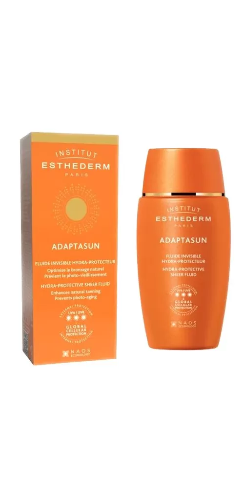 ADAPTASUN ochranný hydratační fluid je ultra-lehký fotoprotekční přípravek, který chrání pokožku před slunečním zářením a zároveň podporuje rychlejší, intenzivnější a dlouhotrvající opálení. Moderní technologie značky Institut Esthederm poskytují vysokou ochranu před UVA/UVB zářením, viditelným světlem i oxidačním stresem a zároveň pomáhají zachovat mladistvý vzhled pleti. Lehká textura se rychle vstřebává, nezanechává bílé stopy ani lepivý film a zanechává pleť hydratovanou a jemnou.