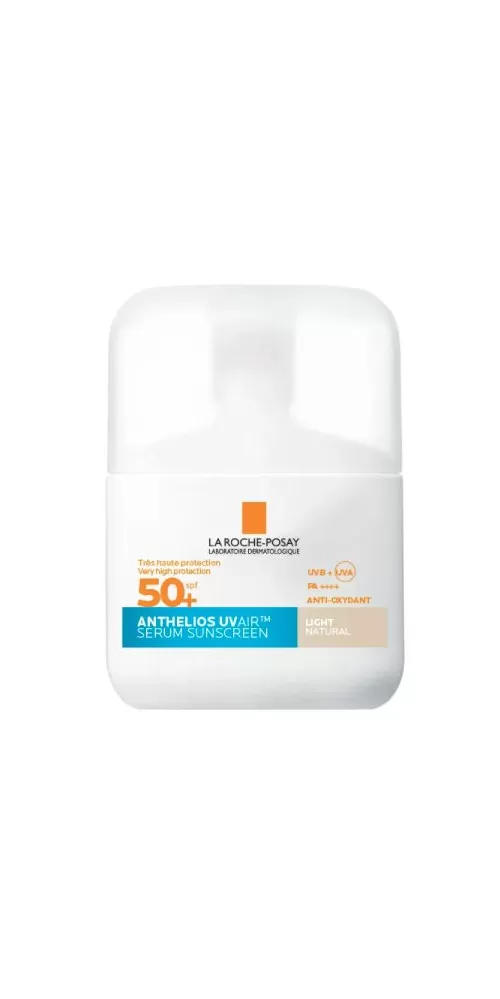 LA ROCHE-POSAY ANTHELIOS UV AIR ochranné ochranné ultralehké tónované sérum SPF50+ pro pocit svěží a čisté pokožky bez zatížení. INDIKACE: Tónovná každodenní ochrana proti UVA/UVB záření a oxidačnímu stresu způsobenému UV zářením, znečištěním a infračerveným zářením. Testováno ve znečištěném městě s vysokou úrovní UV záření, horka a vlhkosti. Pomáhá snižovat dopad světelného znečištění na pokožku. Lehké přirozené krytí. Pomáhá skrýt nedokonalosti a nerovnoměrnosti tónu pleti. Přizpůsobivý odstín. Lehce splyne. Prodyšné na pleti. Až 12h kontrola kožního mazu*. S 16h antioxidačním účinkem**. Poskytuje až 24h hydrataci*** Vhodné jako báze pod make-up. Obsahuje kyselinu hyaluronovou, niacinamid a vitamin E. Hypoalergenní a testováno pod dermatologickou a oftalmologickou kontrolou.