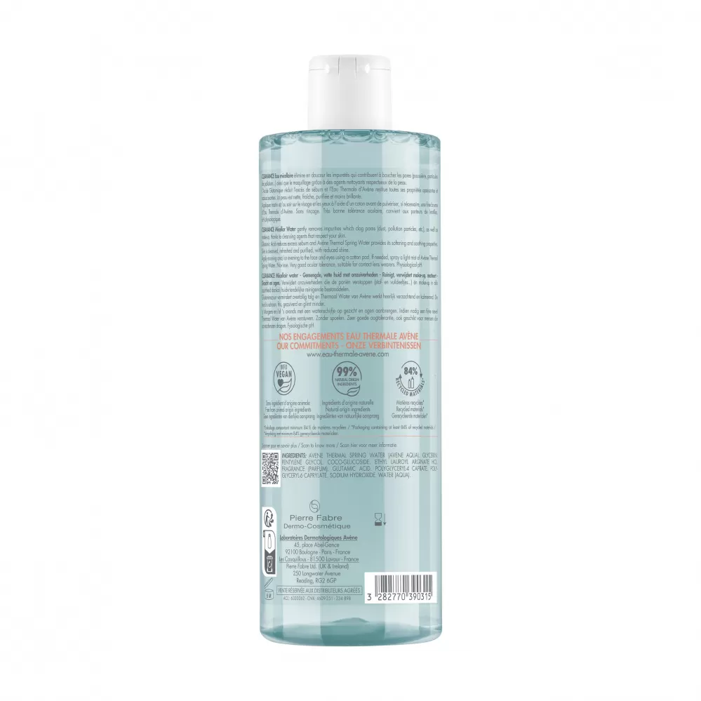 Tato micelární voda složená z 99 % ze složek přírodního původu odstraňuje make-up již z prvního vatového tamponu¹ a odstraňuje i jemné částečky znečištění, aby zanechala pleť vyčištěnou, svěží a zmatněnou. Její složení obohacené o termální vodu Avène a glycerin zaručuje jemné čištění, které pomáhá obnovit přirozenou rovnováhu pleti. ¹Senzorický profil hodnocený 15 vyškolenými odborníky.