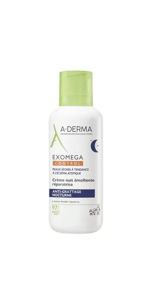 Exomega Control Regenerační emolienční noční krém je první emolienční přípravek působící na noční škrábání. Tento vysoce účinný krém je bez parfemace a má 97 % složek přírodního původu. Obsahuje nové účinné duo přírodních aktivních látek: OVES RHEALBA® a HELICHRYSUM (SMIL).