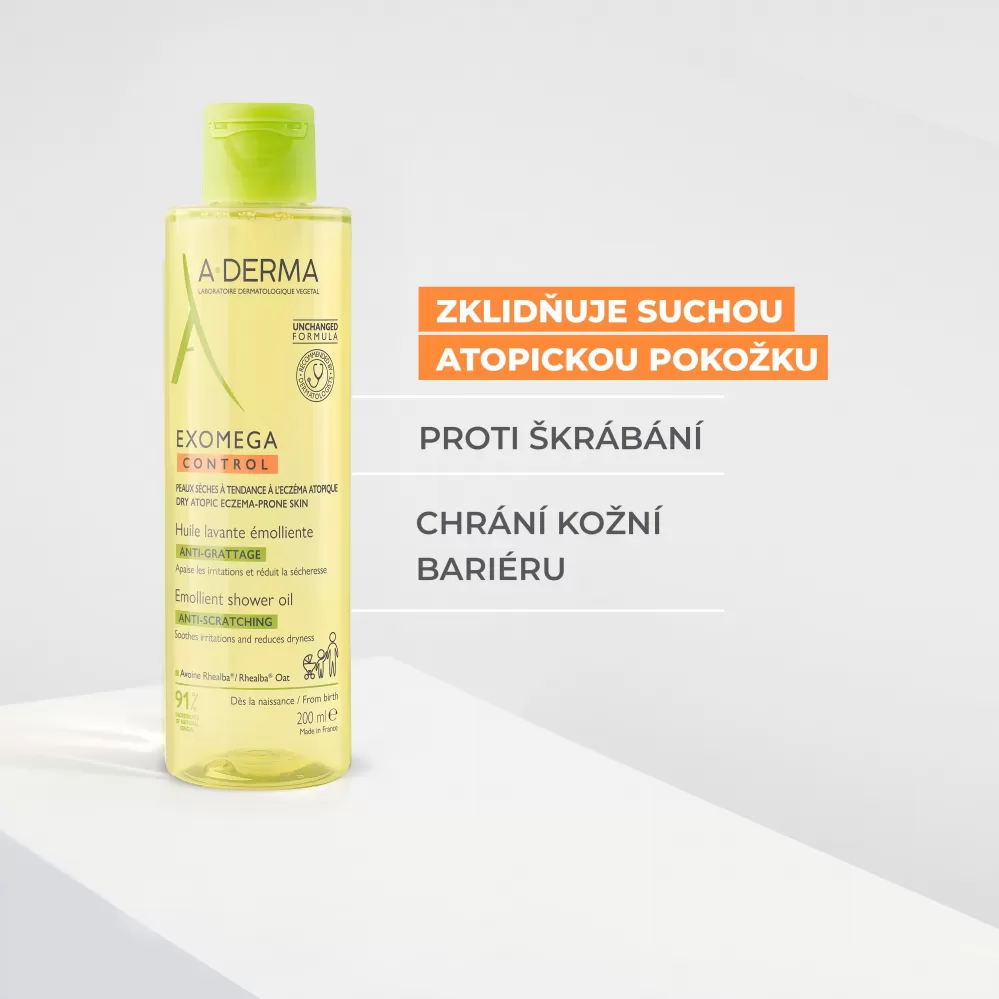 Přírodní, zvláčňující sprchový olej EXOMEGA CONTROL čistí, vyživuje, zklidňuje a snižuje suchost kůže se sklonem k atopii. Je vhodný již od narození.