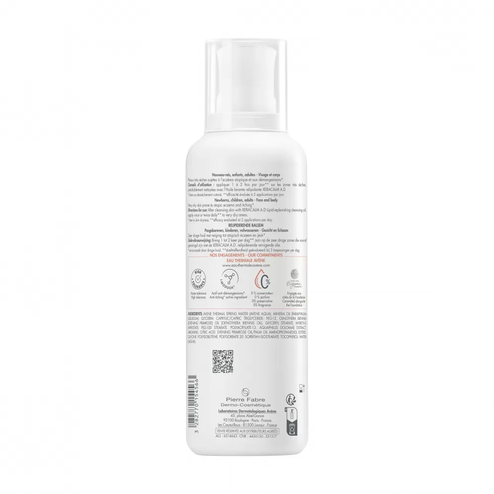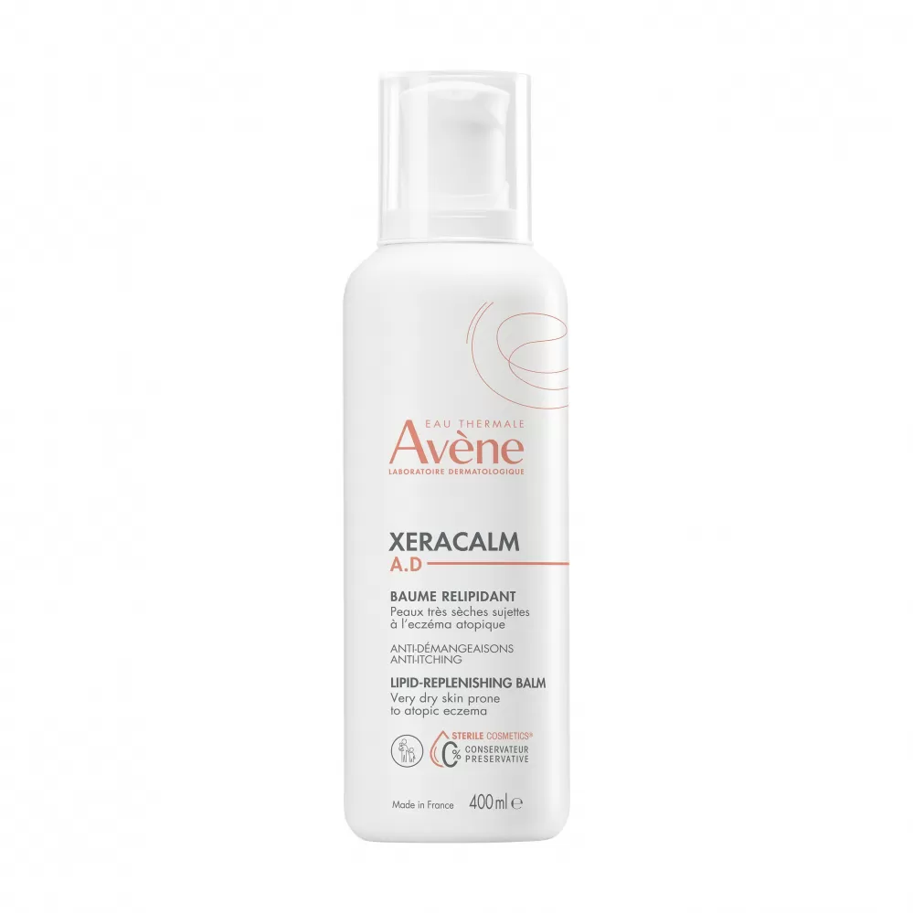 XeraCalm A.D Relipidační balzám zmírňuje svědění způsobené suchostí kůže a respektuje kožní mikrobiom. Obsahuje účinnou kombinaci první postbiotické aktivní látky získané z termální vody Avène, I-modulia®, která zmírňuje svědění*, stimuluje obranyschopnost pokožky a působí proti podráždění, ,Cer-omega lipidickému komplexu podobnému kožním lipidům, který vyživuje a obnovuje ochrannou kožní bariéru, a termální vody Avène, která zklidňuje, zjemňující a působí proti podráždění. Tato péče dokonale vyhovuje kojencům, dětem i dospělým s velmi suchou pokožkou se sklonem k atopickému ekzému a svědění. Je nekomedogenní a bez parfemace. Obsahuje poouze složky nezbytné pro kůži. Vyvinuto s cílem minimalizovat riziko vzniku alergických reakcí.
