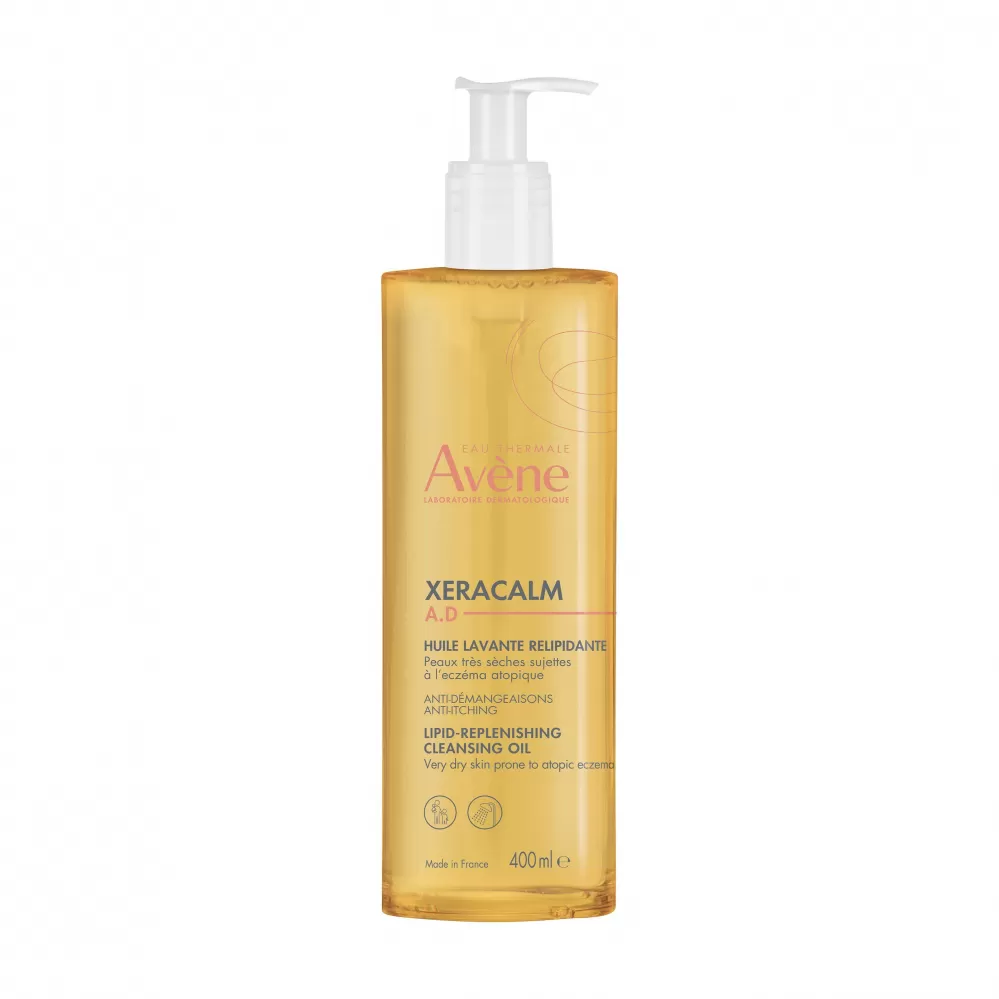 AVENE XeraCalm A.D Relipidační mycí olej jemně myje velmi suchou kůži celé rodiny (kojenci, děti, dospělí) se sklonem k atopickému ekzému, ichtyóze, prurigu, psoriáze, svrabu, stařecké suchosti a v případě suchosti kůže u systémových onemocnění. Mycí olej poskytuje kůži okamžitou úlevu od svědění, zklidňuje její zarudnutí, navrací ji komfort, jemnost a výživu a chrání ji před vysušením vyvolaným vodou.
