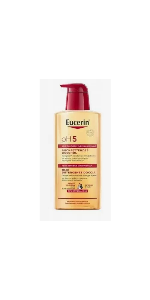 Relipidační sprchový olej pH5 od Eucerinu napomáhá udržovat pokožku celého těla čistou, hebkou a zklidněnou. Po nanesení vytváří tenký ochranný film bránící dehydrataci a podráždění. Klinické studie dokazují, že je velmi účinný a nezpůsobuje zarudnutí či svědění ani u citlivé a oslabené pokožky. Olej se doporučuje používat v kombinaci s tělovým mlékem Eucerin pH5.