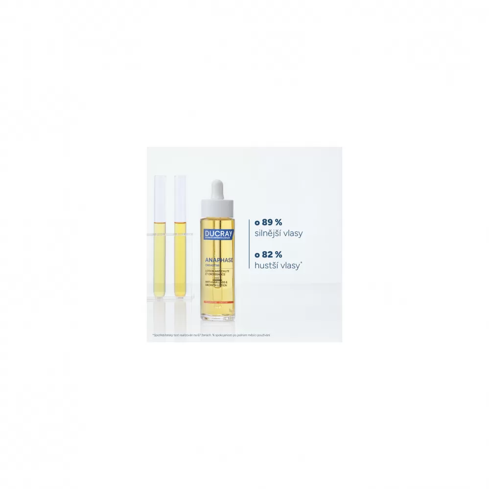 Krásu a zdravý vzhled vlasů ovlivňuje během života řada faktorů. Zátěžová období, kdy prožíváme stres, dieta, těhotenství či porod mohou mít na růst a kvalitu vlasů negativní dopad. Ducray Creastim Reactiv roztok proti vypadávání vlasů se podílí na tvorbě kvalitního vlasového stvolu, čímž zvyšuje hustotu kadeří a posiluje je. Pomáhá zvýšit rychlost růstu vlasů. Roztok je velmi šetrný k pokožce a nedráždí ji. Jeho lehká textura nezanechává vlasy mastné.