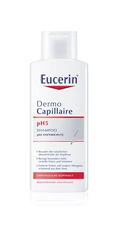 Šetrný šampon od Eucerinu je svým složením vhodný pro citlivou pokožku. Pomáhá udržovat přirozené mírně kyselé pH pokožky, které pokožku chrání před škodlivými vlivy z okolního prostředí. Pravidelným používáním dochází ke zklidnění pokožky a obnovení její přirozené rovnováhy. Navrací vlasům přirozený lesk a pružnost.