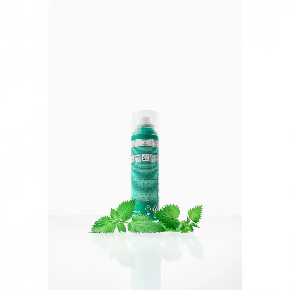 ložení obohacené o BIO kopřivu, antioxidační vitamin E a ultra absorpční pudry přírodního původu odstraní přebytečný maz a vlasům dodá čistotu, jas a objem během pouhých 2 minut. Bezoplachový sprej umožňuje snadnou aplikaci, která osvěží a pročistí pokožku hlavy od kořínků a zároveň navrátí vlasům lehkost a pružnost.