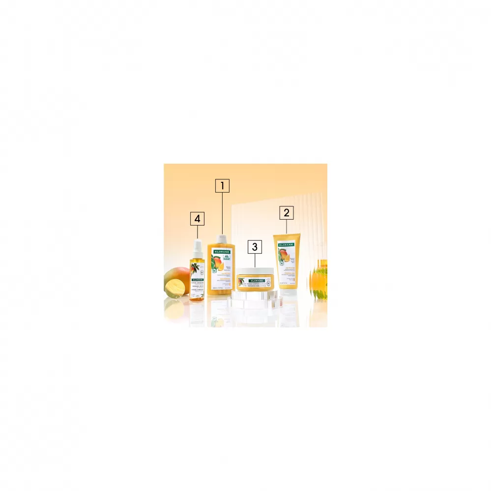 Laboratoře Klorane hledaly v rostlinné říši nejvhodnější odpověď na problém suchých a poškozených vlasů a zvolily lahodné exotické ovoce mango, přesněji mandli jeho pecky, pro výrobu mangového másla. Mangové máslo je výjimečně bohaté na mastné kyseliny s dlouhým řetězcem, které dokonale vyživují, obnovují a vyhlazují vlasové vlákno.